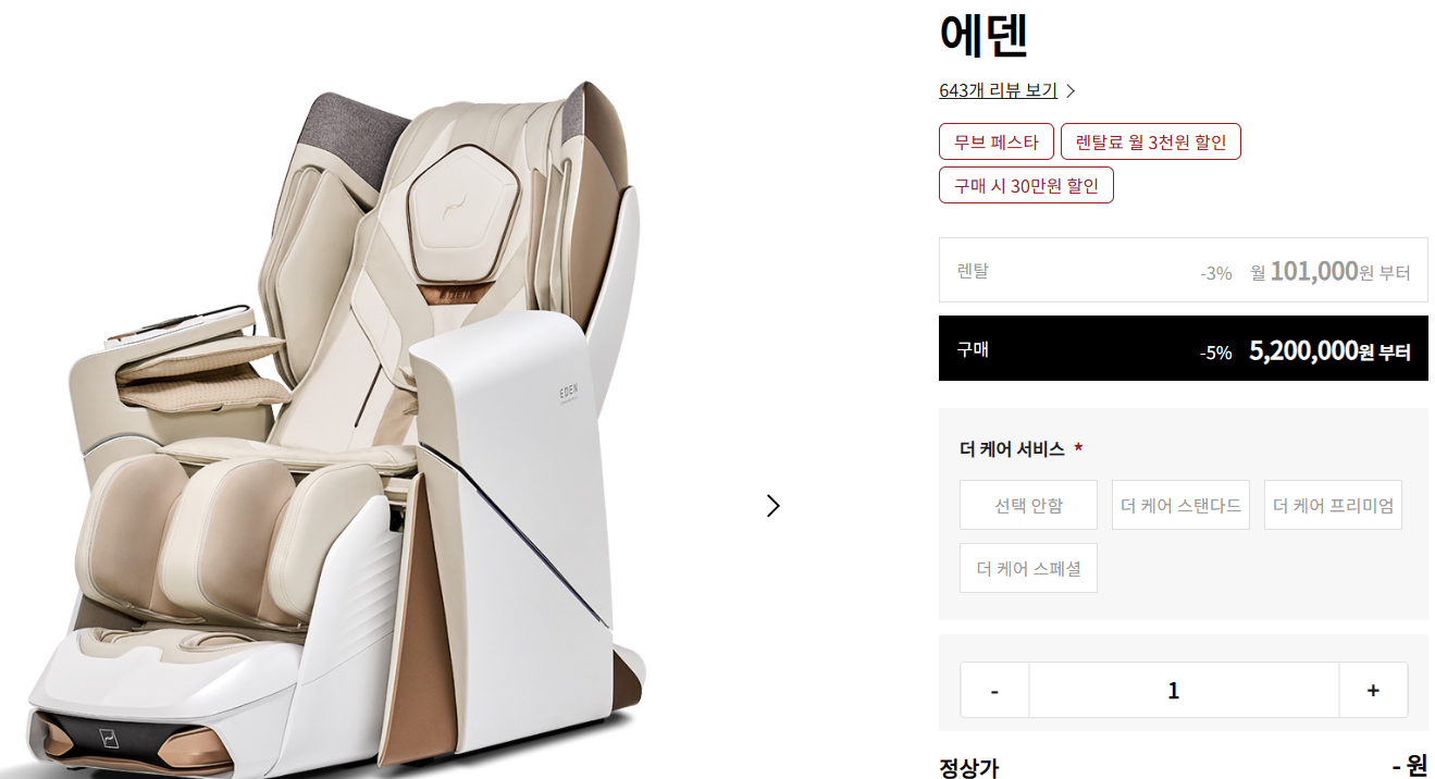 렌탈을 통해 초기 비용 부담 없이 이용 가능하고, 전국 체험 매장에서 제품 확인 후 구매 결정이 가능해 만족도가 매우 높습니다.