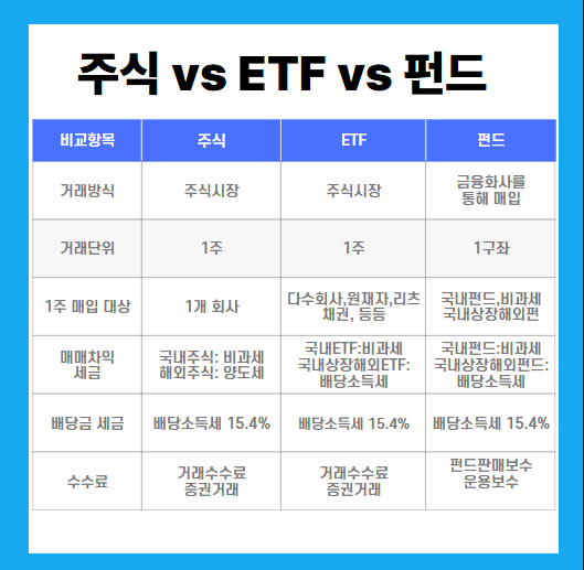 주식 vs ETF vs 펀드의 차이 비교