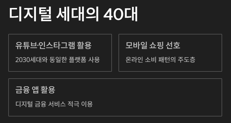 현 40대는 인터넷, 스마트폰, SNS의 확산기를 직접 경험하며 성장한 세대입니다.
