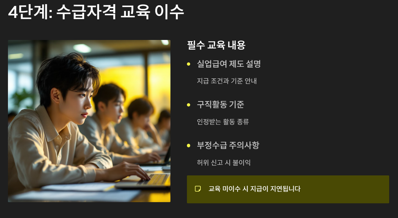 교육 미이수 시 실업급여 지급이 지연될 수 있습니다.
