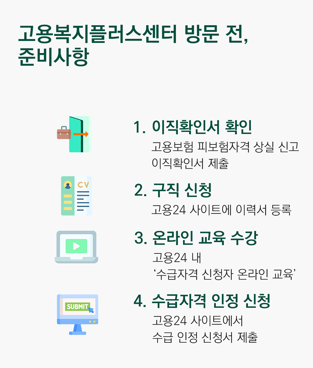 - 방문해서 하는 일: 온라인으로 제출한 서류를 바탕으로 담당자가 실제 수급 자격이 되는지 심사하고, 실업 신고를 확정합니다.