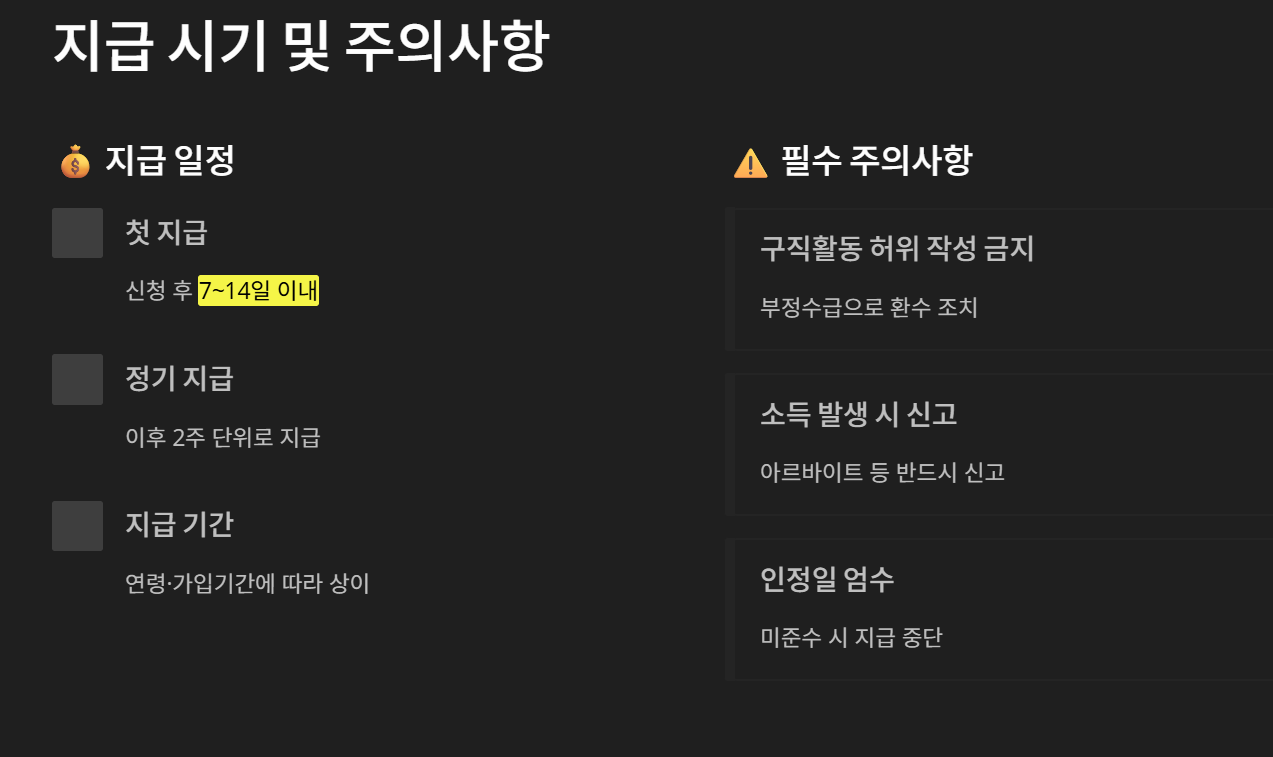 - ✔ 정해진 인정일 미준수 시 지급 중단