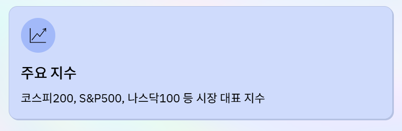 시장 대표 지수형: S&P500, 나스닥100, 코스피200 등 (초보자에게 가장 추천)