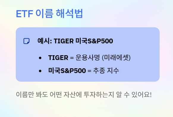 ETF 이름에는 상품의 정체가 숨어 있습니다. 이름을 해석할 줄 알면 선택이 쉬워집니다.
