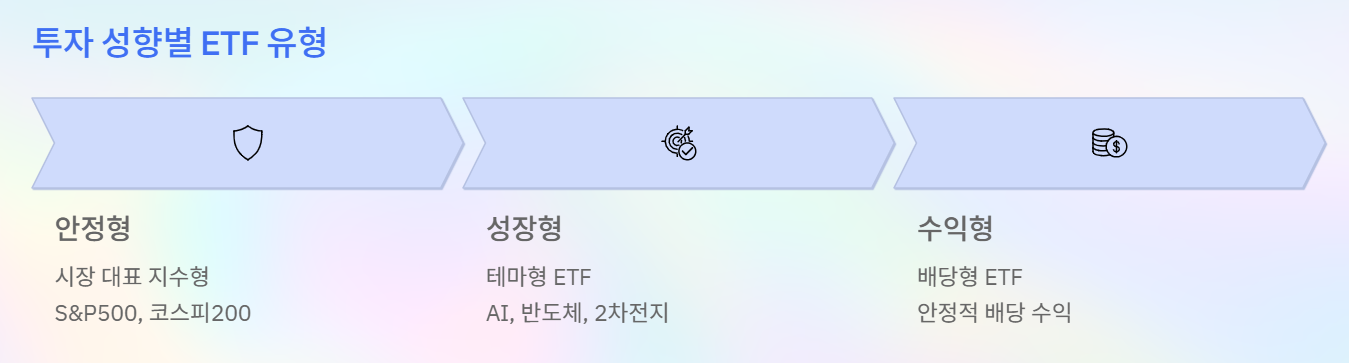 👉 ETF의 가장 큰 장점은 바로 분산 투자 + 낮은 수수료 + 쉬운 거래입니다.