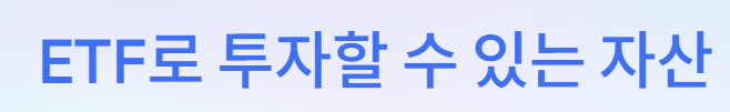 주식 시장에서 실시간으로 사고팔 수 있으며, 다양한 지수(코스피, 나스닥 등), 산업 섹터(2차전지, 반도체, 인공지능 등), 원자재(금, 은, 원유) 등 다양한 자산에 투자할 수 있는 ETF가 있습니다.