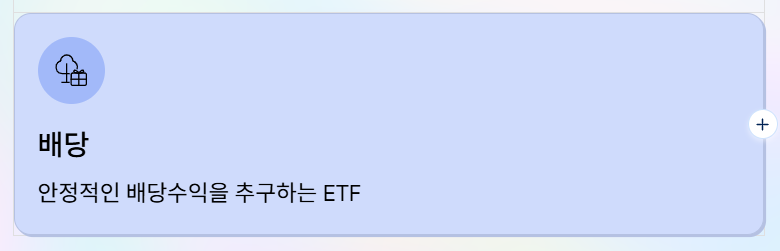 배당형: 배당금을 많이 주는 기업들을 모아놓은 상품 (예: SCHD 추종 상품)