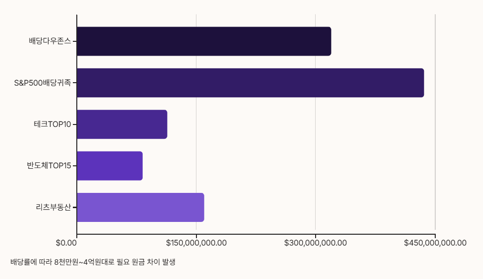 위 표를 통해 확인할 수 있듯이, 선택하는 월배당 ETF 추천 종목의 성격에 따라 필요한 원금이 적게는 8천만 원대에서 많게는 4억 원대까지 크게 차이 납니다.