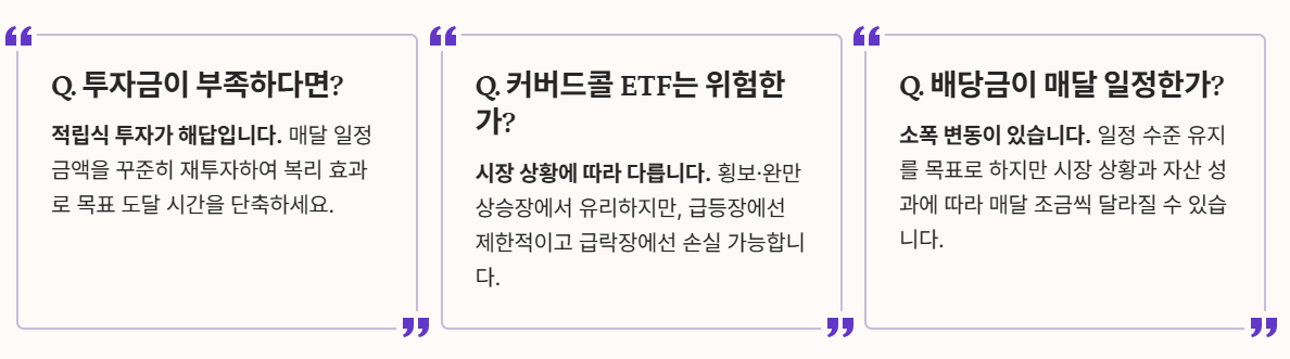 Q2. 커버드콜 월배당 ETF 추천은 위험하지 않나요?