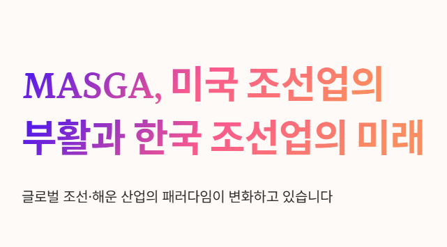 마스가 뜻은 '미국 조선업을 다시 위대하게(Make American Shipbuilding Great Again)'라는 의미로, 이는 글로벌 공급망 재편과 기술 혁신을 상징하는 핵심 키워드입니다.