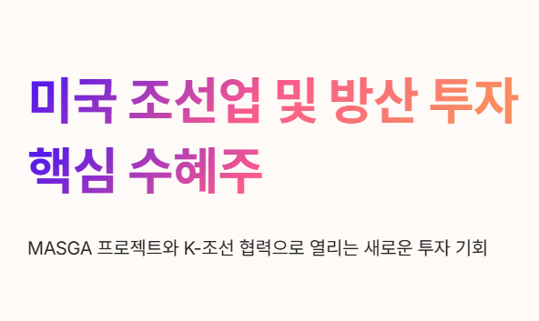 이 종목들은 미국 내 선박 건조 인프라를 독점하고 있어 마스가(MASGA) 정책의 직접적인 수혜를 입습니다.