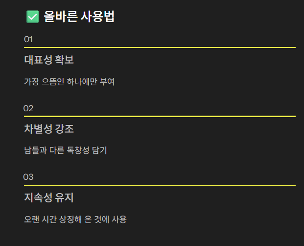 - 대표성: 여러 개 중 하나가 아니라, 가장 으뜸인 하나에 시그니처 뜻을 부여합니다.
