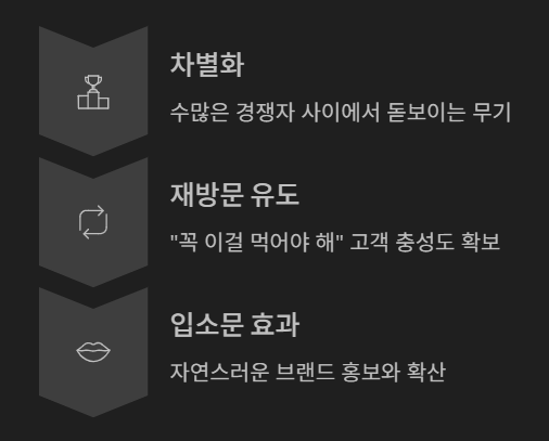 - 희소성 하락: 모든 메뉴에 시그니처 뜻을 붙이면 오히려 대표성이 사라집니다.