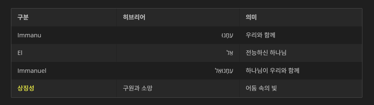 이 표를 통해 임마누엘 뜻이 단순한 고유 명사가 아닌, 신의 약속이 담긴 고백임을 알 수 있습니다.