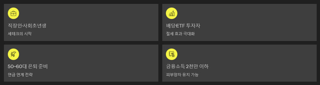 👉 같은 투자를 하더라도 세금을 줄일 수 있는 구조라는 점이 가장 큰 장점입니다.