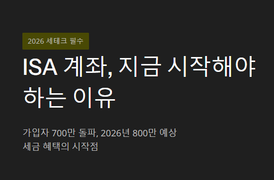 2026년을 앞두고 **ISA 계좌(개인종합자산관리계좌)**에 대한 관심이 폭발적으로 늘고 있습니다.