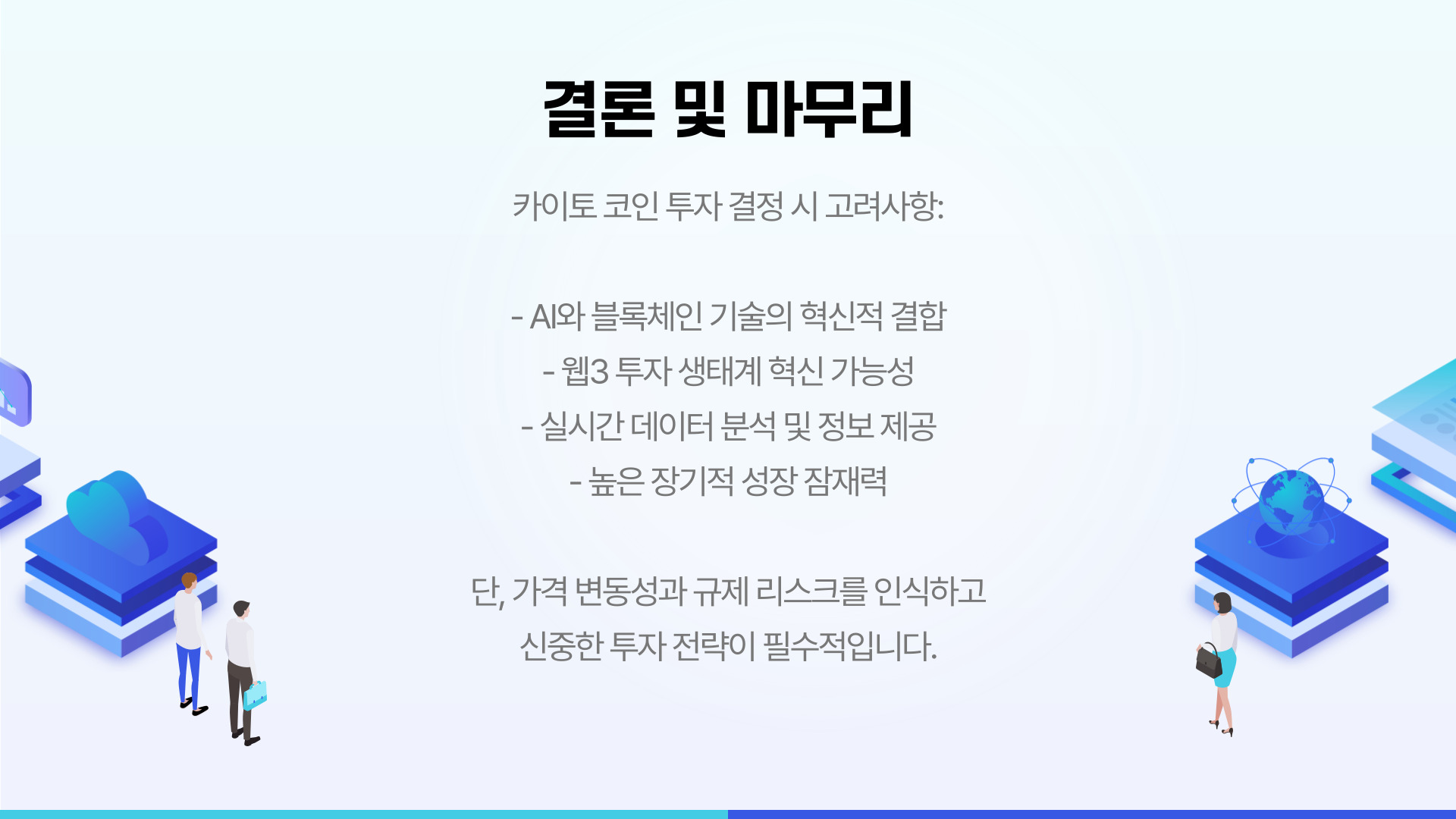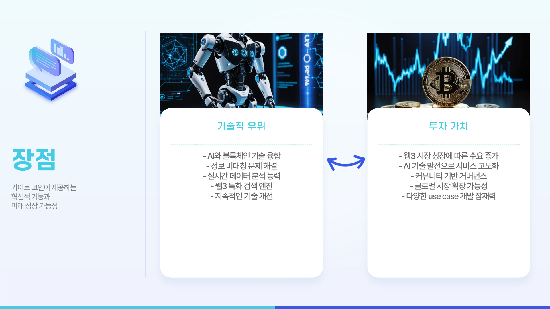 카이토 코인은 AI 기술과 블록체인의 결합을 통해 웹3 투자 생태계를 혁신하는 프로젝트입니다.