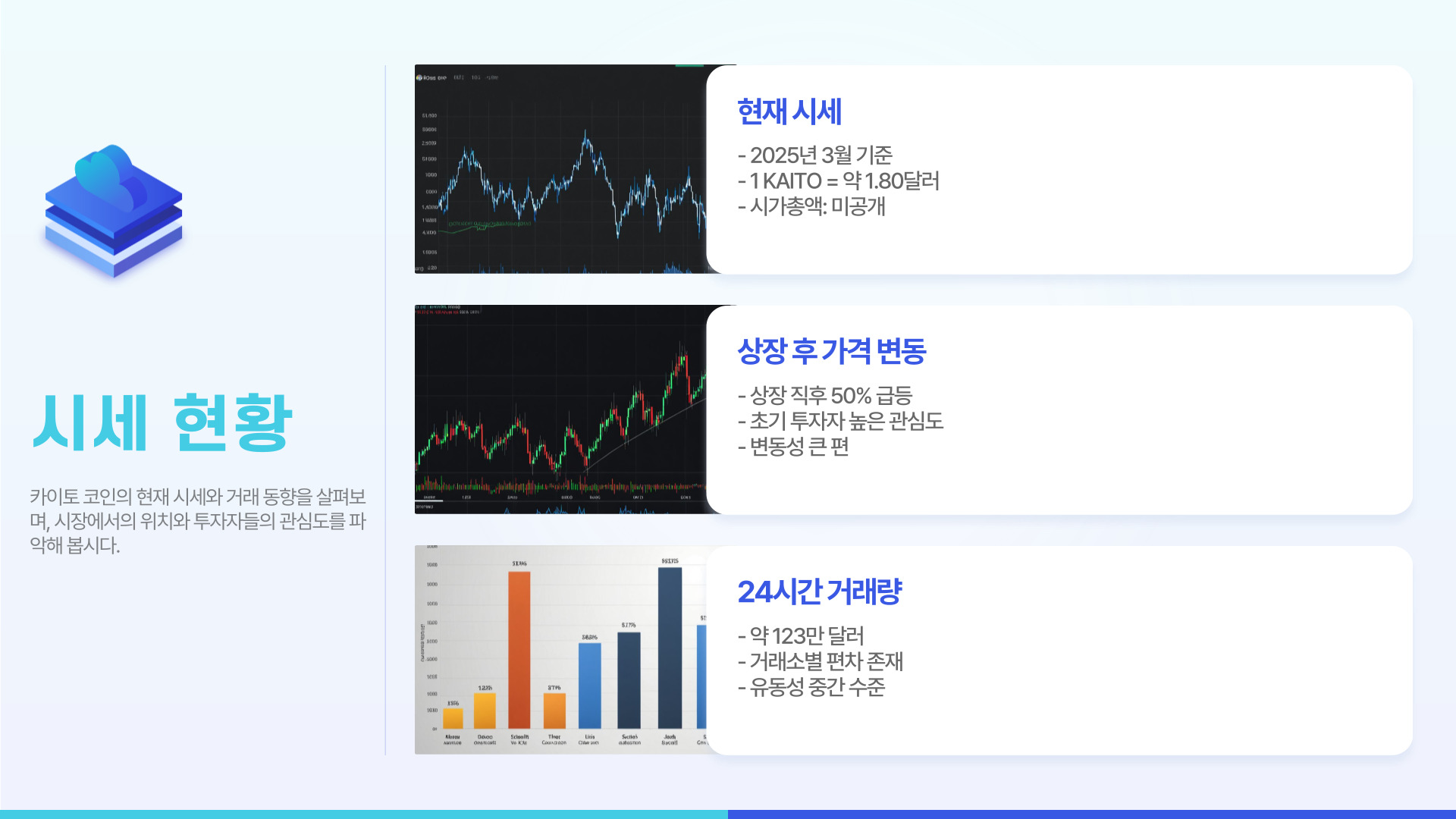 암호화폐 시장에서 인공지능(AI)과 블록체인의 결합은 점점 더 주목받고 있습니다. 특히, **카이토 코인(KAITO)**은 AI를 활용한 데이터 분석으로 웹3(Web3) 투자자들에게 혁신적인 정보를 제공하는 플랫폼입니다. 이번 글에서는 카이토 코인의 특징, 장단점, 시세 전망을 자세히 살펴보겠습니다.