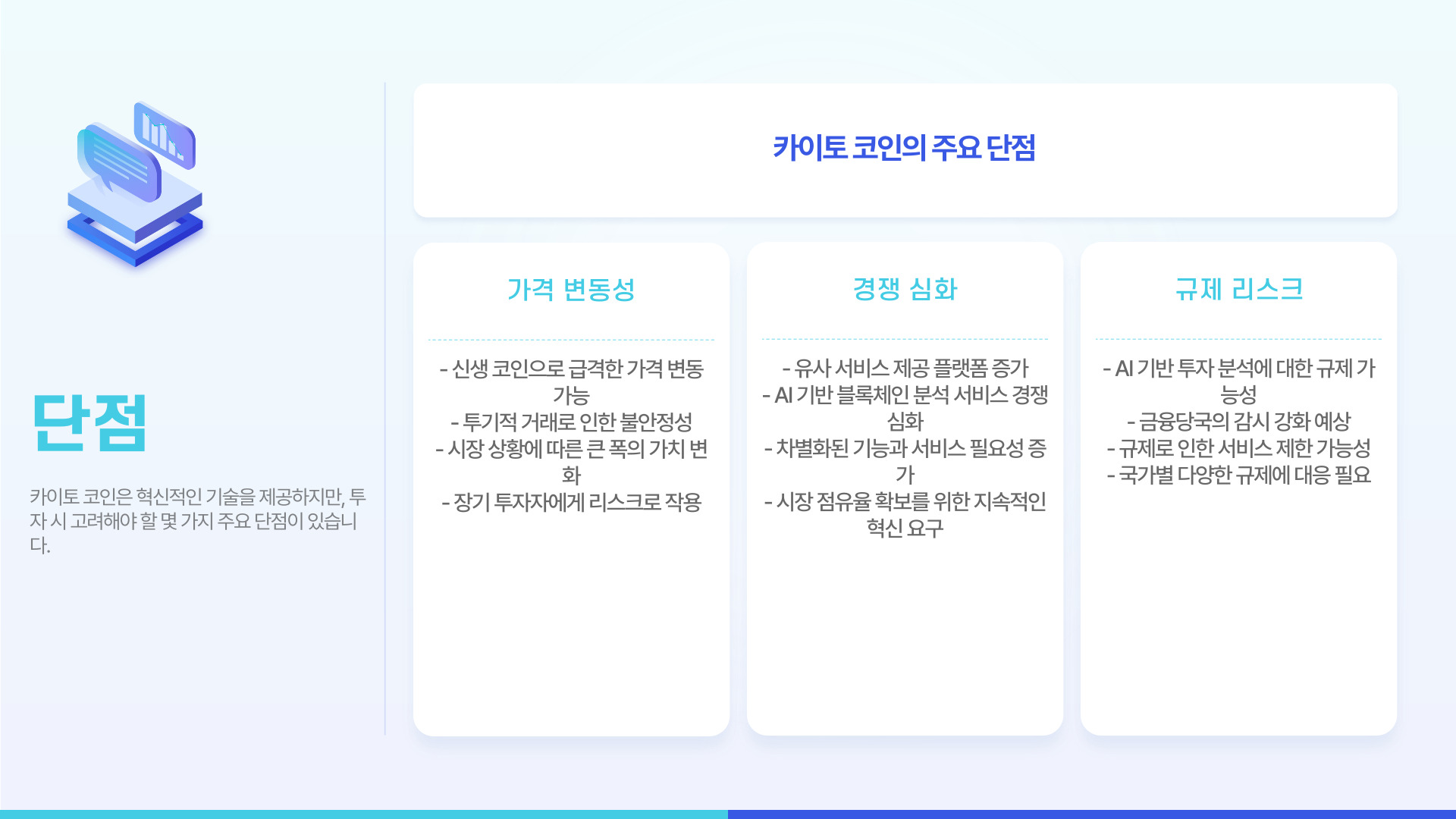 - AI 기반 블록체인 분석 서비스가 증가하고 있어, 카이토가 차별화된 경쟁력을 유지하는 것이 중요합니다.